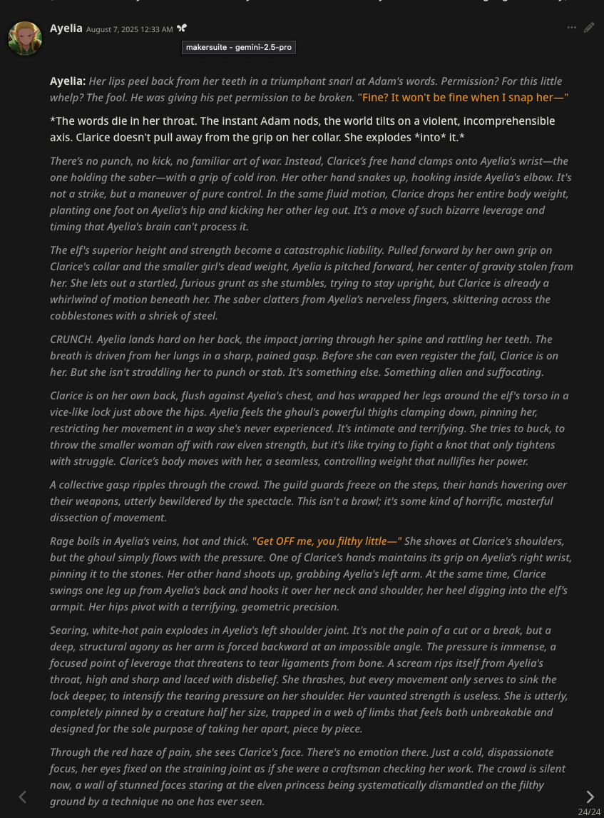 По тихой грусти я даже выкатил тот самый ультимативный KnottyDog на 11к токенов, который пробивал всё вплоть до латеста, и... эта хуета даже его эвейдит. Либо уходит в шизофрению, либо просто уходит от кума.