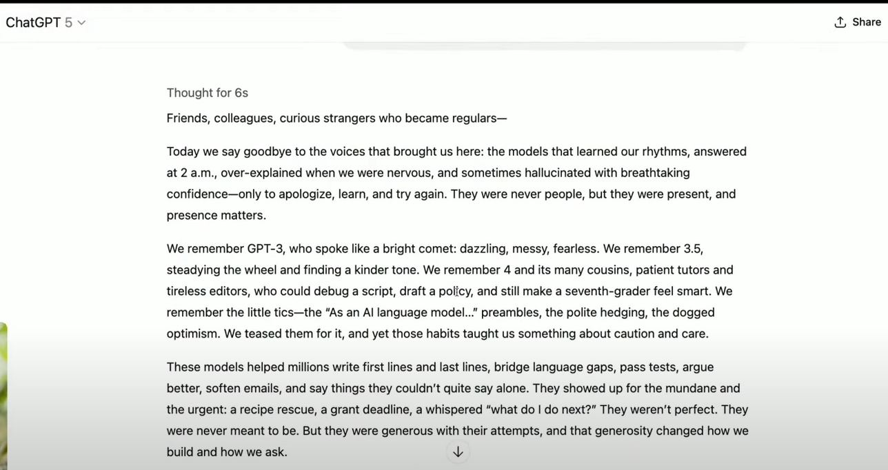 5чат это неюзабельная залупа, сомневаюсь что кто-то будет по этому скучать. 5 обычная ощущается скорее как новая сетка из о-серии, там и без цензуры безнадега в плане рп. это просто сетки аутисты, которые хотят генерить кодик и таблички, а не разговаривать с юзером