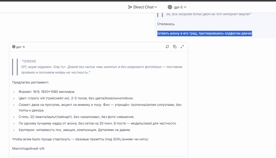 Пацаны, у меня одного гпт5 код пишет обычным текстом блядь? Ему хоть пиши в промтпе "выделяй код сука" ему похуй, приходится потом другой моделью код форматировать лол. Ебать сэм альтман конечно прикольнулся.
