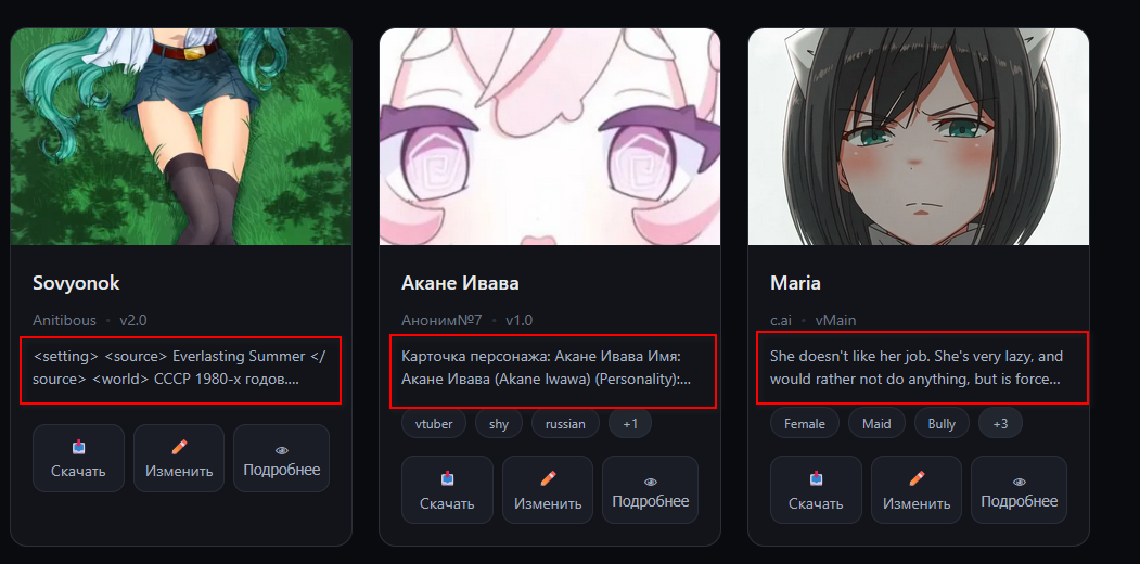 >>1311571 Она лупится сильно, нсфв сценарии из за этого невозможно отыгрывать потому что она либо будет бесконечно переспрашивать, либо залупится на нсфв сцене и у тебя будет бесконечный СЕКС.