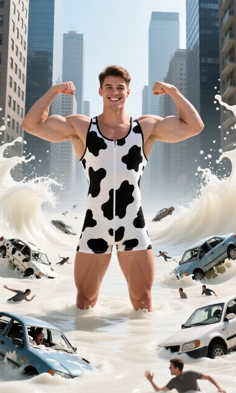 >>1329922 >Giant man wearing dark green business suit with big tomato instead his head standing waist deep in the tomato juice river, surrounded by high buildings. He is on the back plane and 100 meters tall. Space between buildings is narrow. All space below is totally filled with tomato juice and the level of liquid is up to giant`s knees and 2nd floors of buildings. > >Giant hangs his tomato-head and bends down, he is holding his stomach and bending over in pain, he open his mouth and vomits with a thick waterfall of tomato paste and juice down. Flood with waves carries cars and people towards camera. Cars and people floating in the river of tomato liquid. > >only tops of streetlights seen over the surface of red river. > >surreal photo, daylight, high resolution,