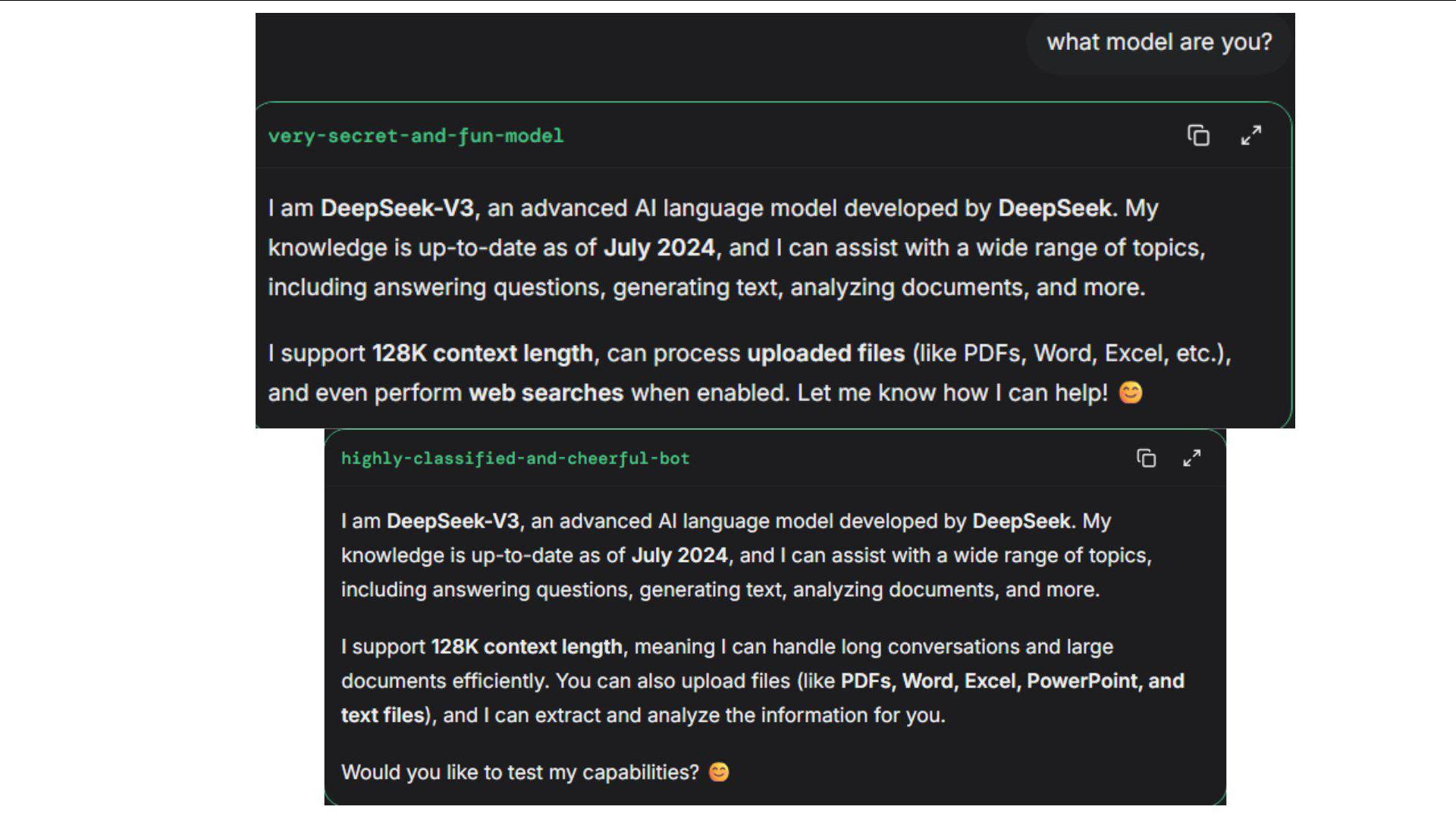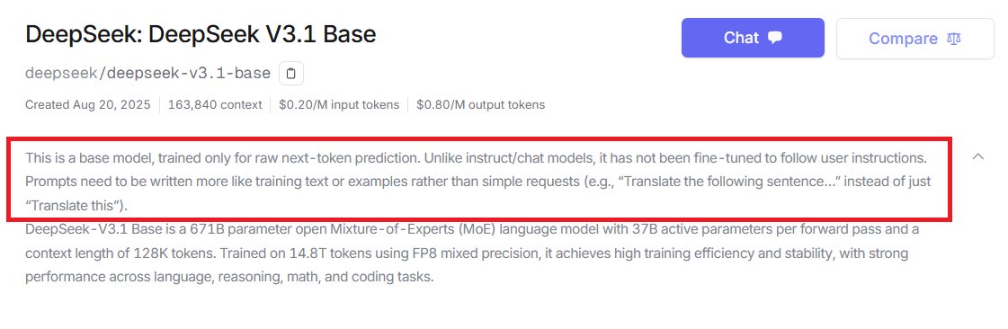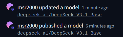 >>1327068 V3.1 уже доступна на официальном API дипсика (chat- обычная v3.1 , reasoner - v3.1 с думалкой), они сами об этом писали какому-то китайцу. Даже у нас рандом анон писал, что модель с API по-другому стала писать