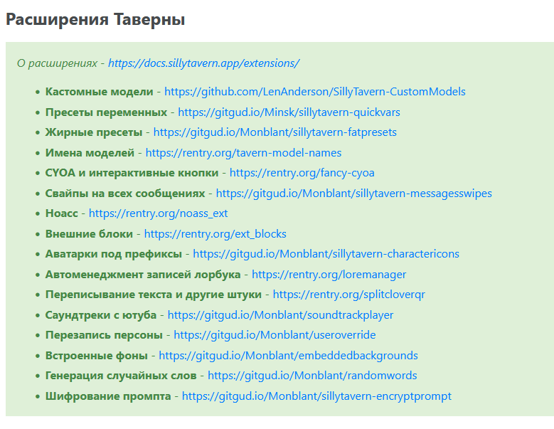 Есть расширения в дискорде таверны (/sillytavern). Есть ещё разные которые раскиданы повсюду, это только самому искать.