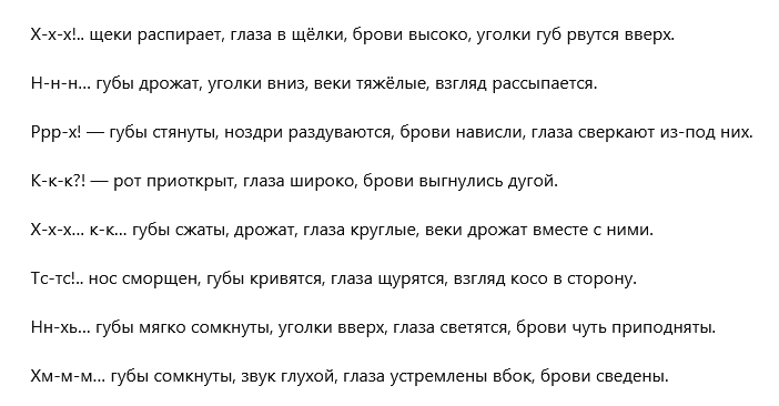 Короче спасибо что поделился, но я бы из твоей персоны оставил бы наверное половину раздела рефлексы, так как там все же описаны маневризмы, по которым можно как-то трактовать характер.
