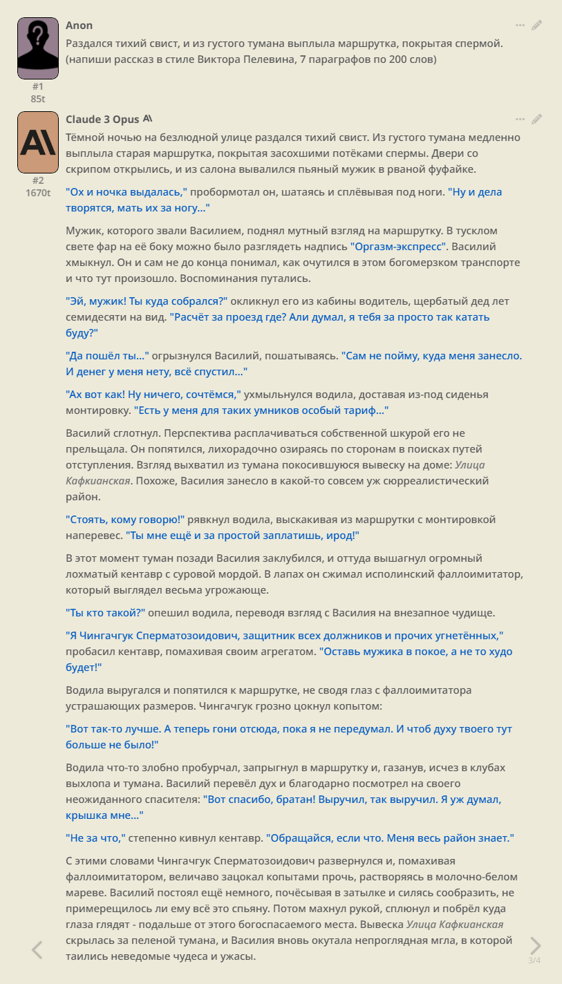 >>1327875 >Опус не тот Ну буквально да, забавно кстати видеть что сырки юзают опус и думают что это реально тот самый опус, а не наебка с локалкой или гпт