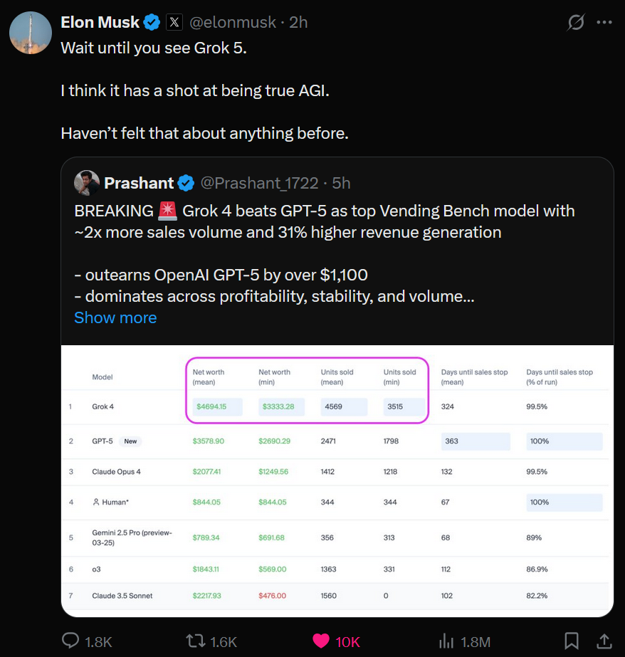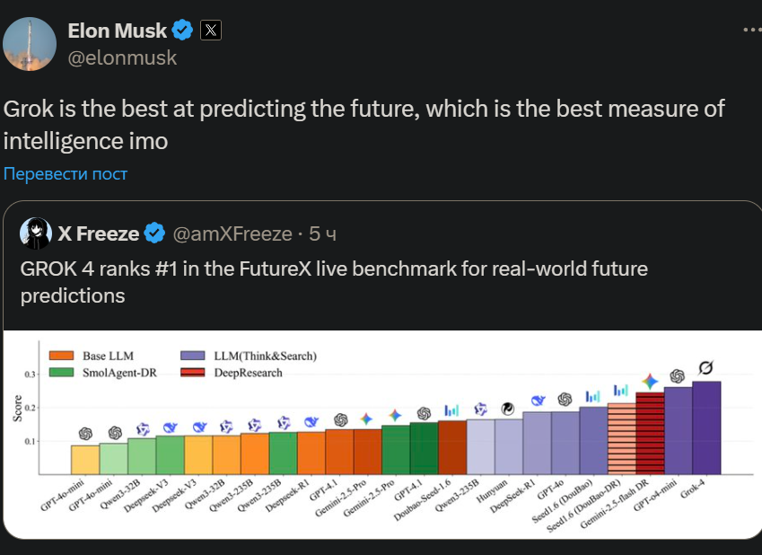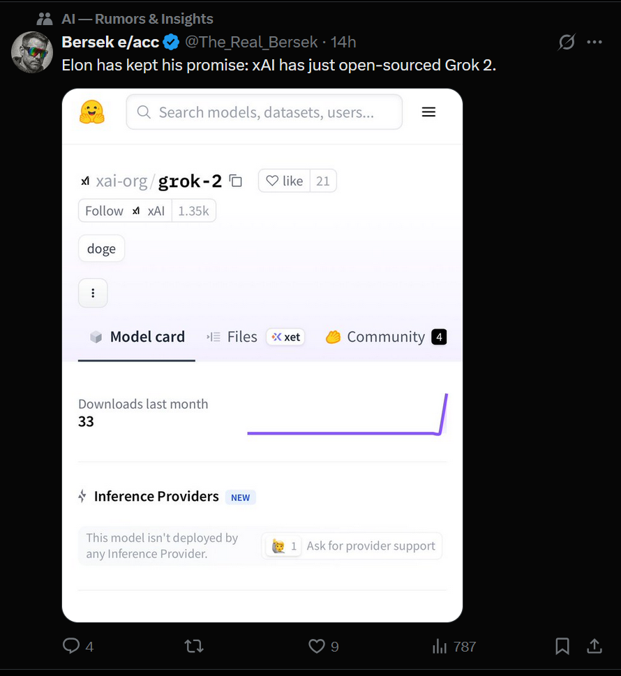 >>1330518 Маск молодец на самом деле, что выпустил (дарио пидорас никогда такого не сделает). Грок 2, кстати, если бы не лупился, был бы отличным середнячком в свое время. Еблю он писал посочнее многих сеток.