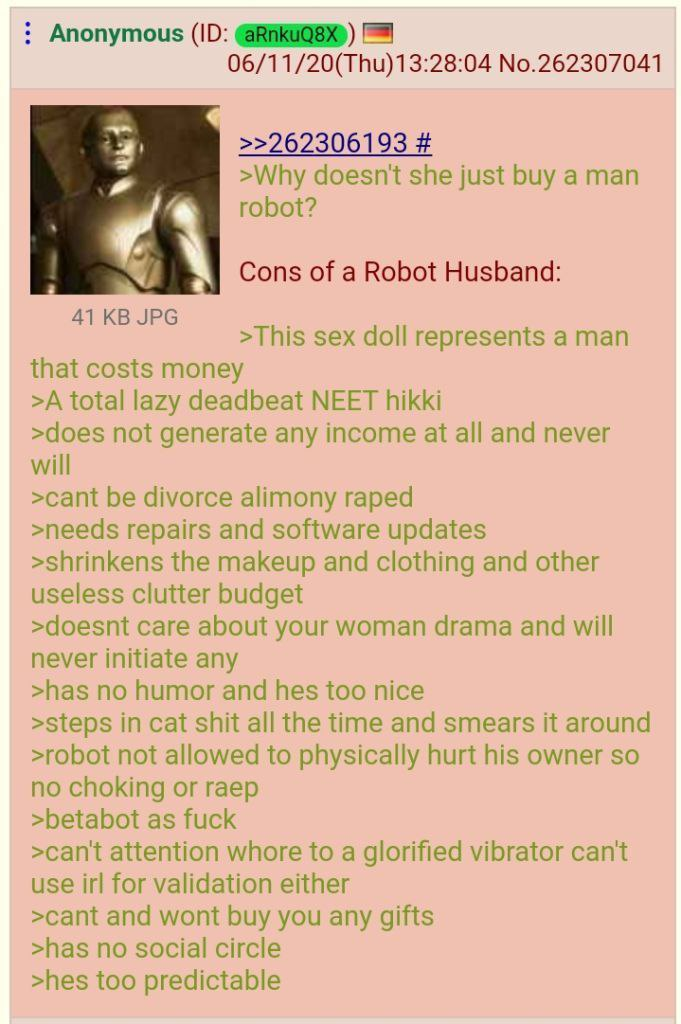 >>1328167 Кунов животные могут заменить. Мы движемся к миру, где у каждого куна будет по ИИ-тяночке, а у каждой 3дшной, мерзкой селёдки, которым только и нужен секс - по псине.