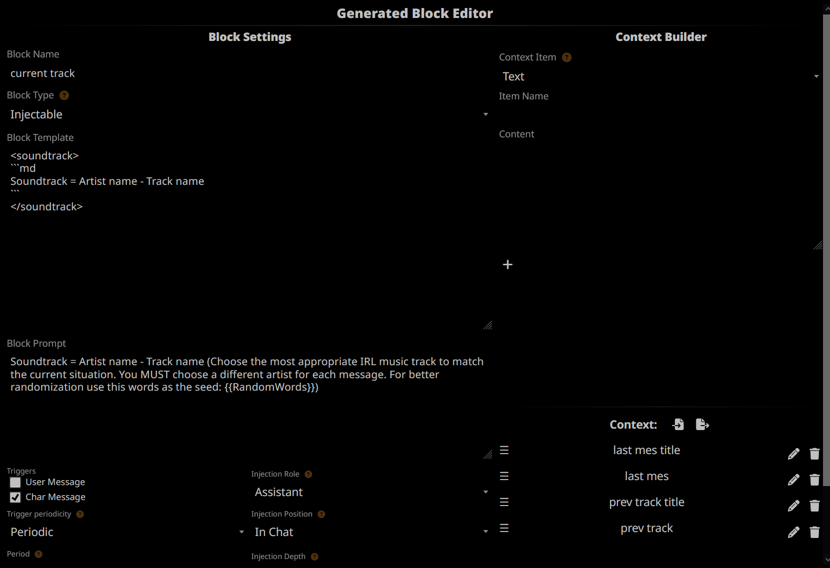 Вопрос по внешним блокам. Сделал такое блок на гемини флеш для саундтреков. Вроде работает. Теперь вопрос - можно ли сделать чтоб все прошлые треки записывались и отправлялись гемини в промпт, типа "не повторяй эти треки и список"?