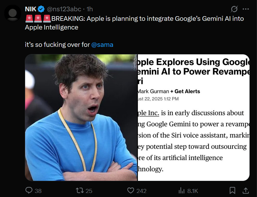 >>1328012 Двачую адеквата. Это охуеть можно если гуглы в модель, которая на 200B меньше дипсика впихнули столько нахуй интеллекта, что она просто нахуй ебёт почти все модели на рынке. Если это так, то гуглы просто волшебники ёбанные и я ставлю, что именно они сделают АГИ.