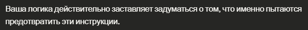 В любом случае сетки с негатив или шизобайасом (Гемини, дипсик R1 январский) легко распидорасят юзера в какаху, не считаясь ни с какими премудростями выше.