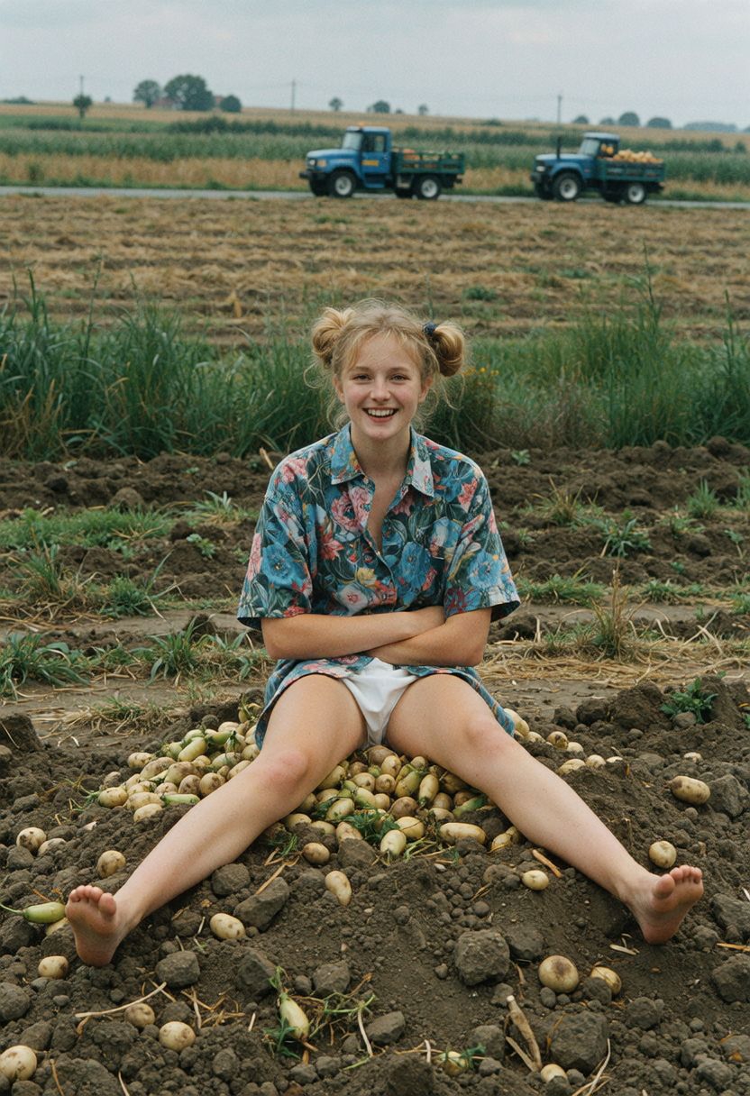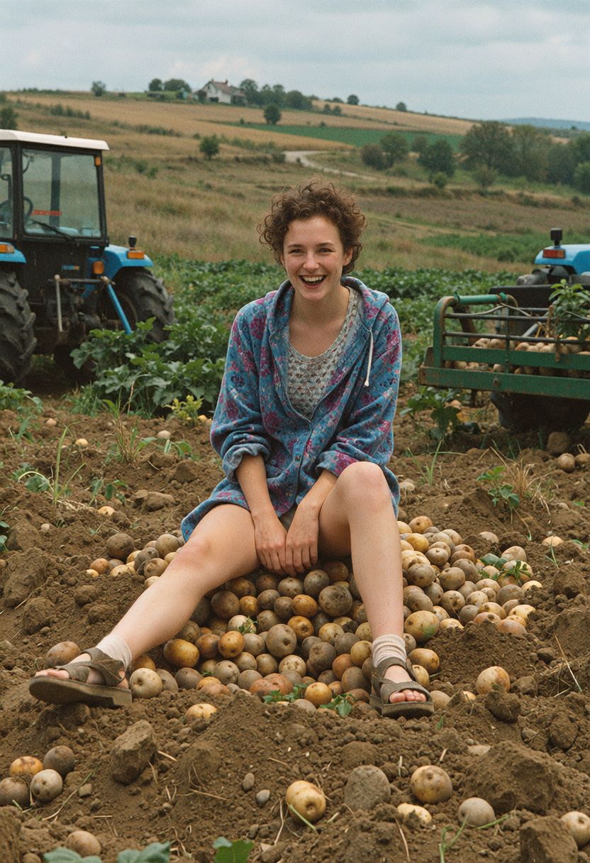 Похоже уперся либо в лимит того, что qwen способен переварить, либо в 1 cfg. an attractive happy young adult woman in a short yellow strapless dress sitting on a pile of potatoes with her straight legs apart exposing her red and black stripped panties, potato field and industrial zone behind it in the background, in the foreground directly in front of the woman there is a marching band of rats dressed in Scottish kilts walking by and playing various tiny musical instruments including but not limited to drums and trumpets and bagpipes, to the left of the woman is a pterodactyl in a top hat standing on one leg and holding a grocery bag with a logo depicting Belorussian flag and text 'Батька inc.', and on the right side behind the woman there is a happy piglet driving in a red tractor