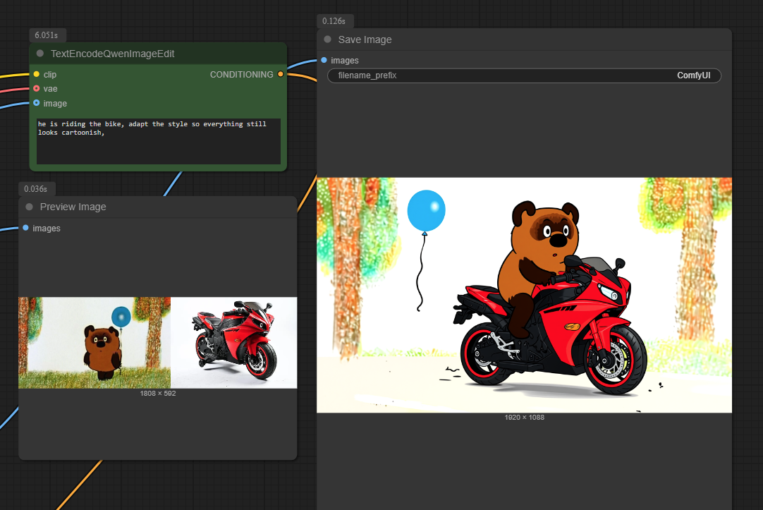 Но если тебе интересно, Qwen Image Edit спокойно не ограничивает себя заданной картиной, ты можешь как поменять картинку, так и использовать объект в картинке чтобы сделать новую картинку, при этом на совсем другом разрешении с другим соотношением сторон.