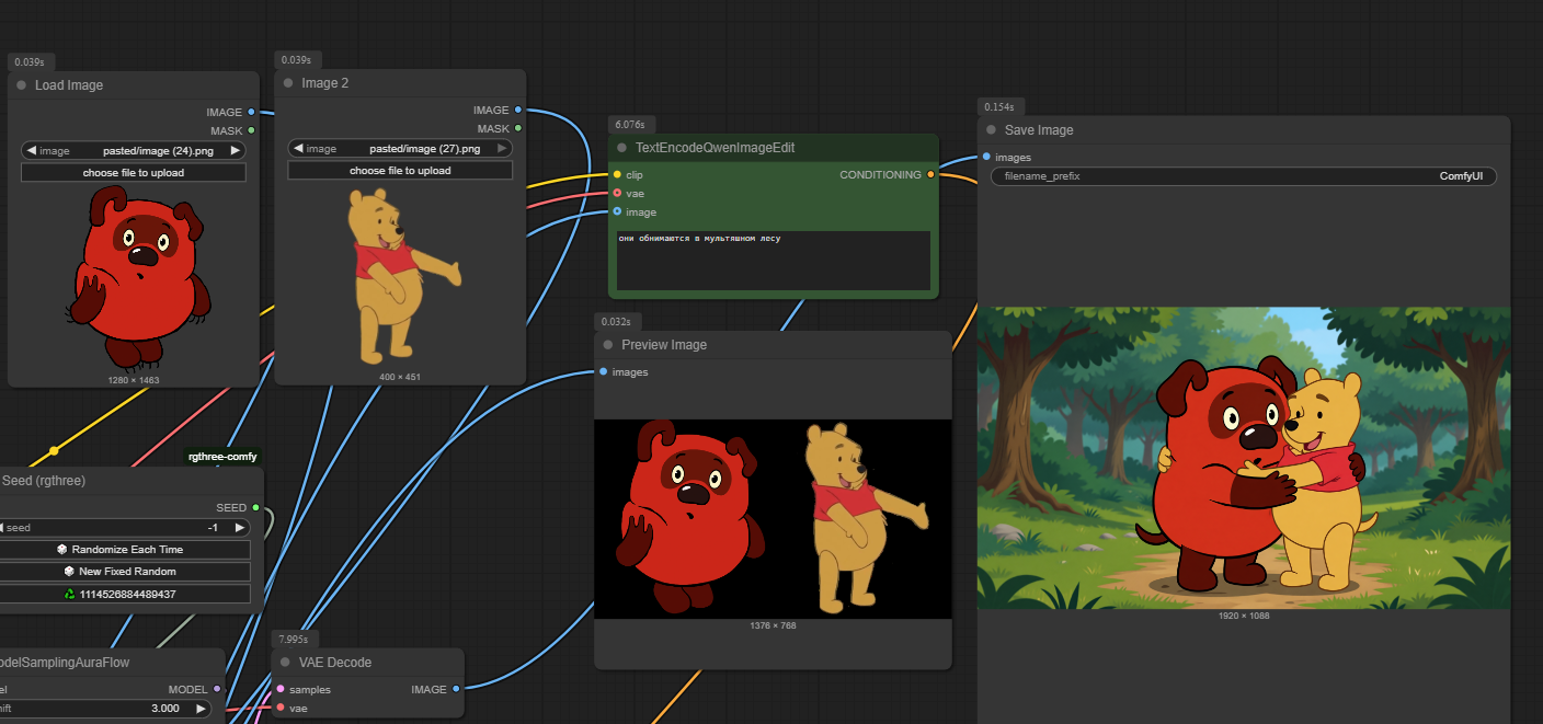 >>1332826 Всё перебрал. Всё хуйня. qwen чуть-чуть делает чё я и ты хотим, FLUX kontext тупо раздевает, ван видео генерирует. Уот така хуйня! Ну, более менее работает InstantID на SDXL, ipadapter faceid v2 наверное тоже, но у меня хуйня получается. Надо кстати опять попробовать поразбираться с аноновским воркфлоу..