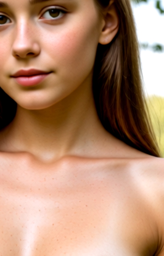 Кожу по умолчанию может мылить. Но если просить реализм, фото, натуральную, то лучше всё это. При реализме пытается в оволосение и пушок даже без просьб.