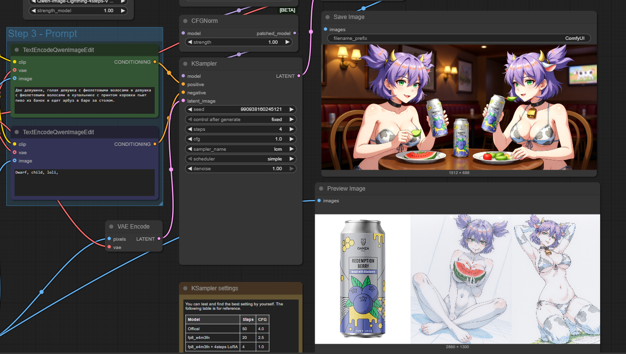 >>1330993 >1. Берем Q3 fp8? Или можно побольше взять? У меня 32 GB RAM. FP8 - это просто qwen_image_edit_fp8_e4m3fn.safetensors - оно уже квантовано в 8бит, но не так как gguf. Других нету (и не нужно). Это, кстати, касается и flux c chroma - они тоже лучше без gguf, и тоже работают так.