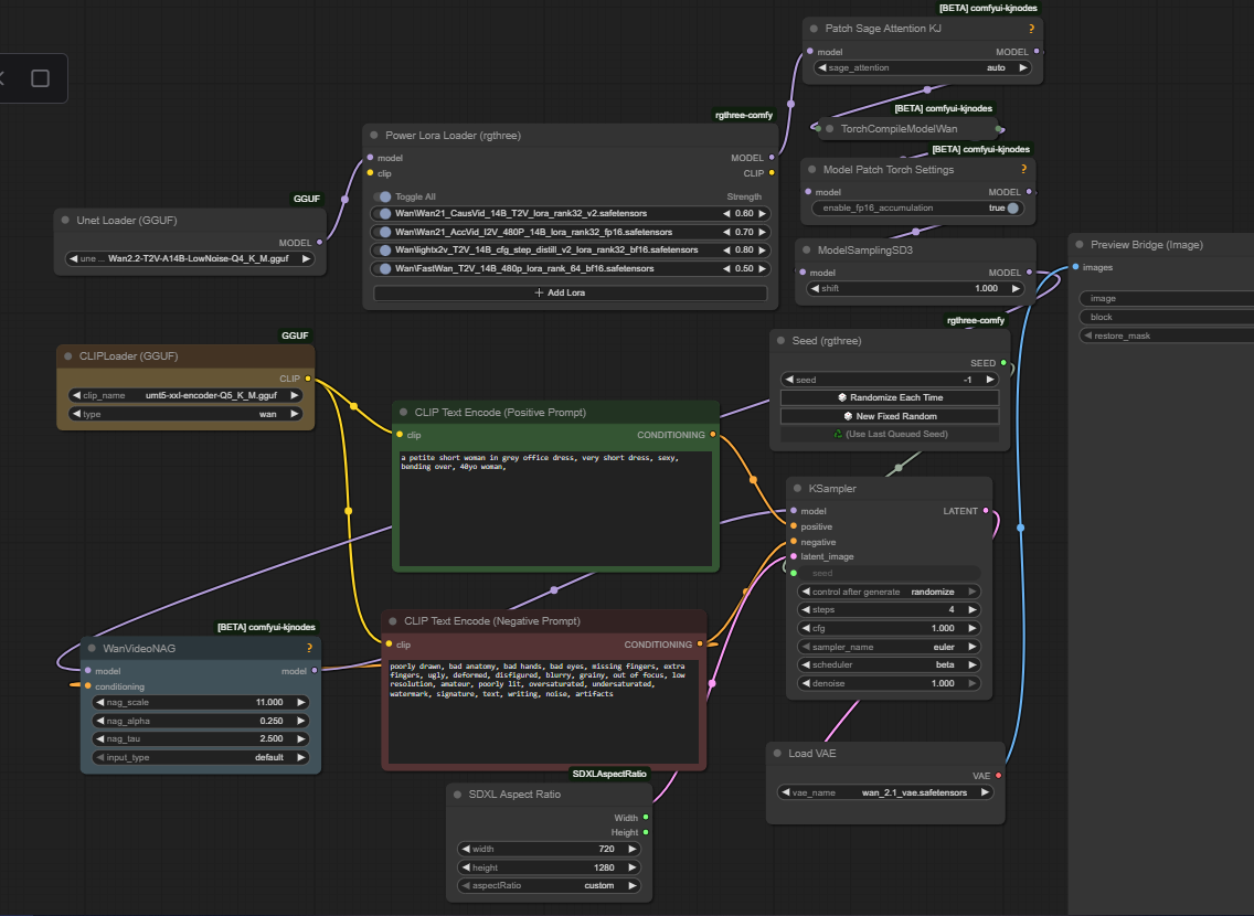 Если полный Wan 2.2 слишком много для тебя, то попробуй просто на lownoise модели прогнать, убрав highnoise и переподключив ноды.