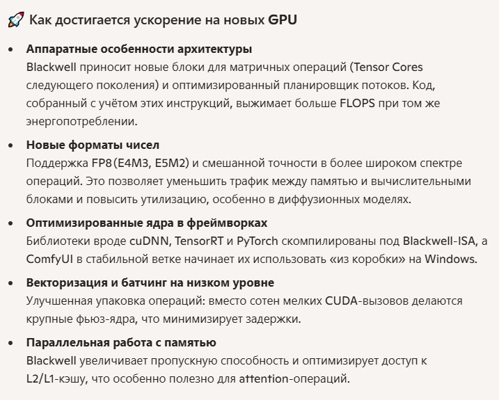 >>1332110 >CMP90HX Это грязь из-под ногтей, у нее специально вырезаны не только тензорные ядра, но и блоки вычислений с плавающей точкой. Она может только майнить. Вроде текстовые додики чет с ней еще могут, но не уверен. >>1332119 >K80 Это вообще кеплер, 2012 год, пирожок. Абсолютная немощь, а чтобы еще веселее было - это две видеокарты на одной плате, каждая с 12 памяти. А что там у нас с генерацией картинок? Правильно, она не работает на нескольких GPU. Хотя, кстати, то ли ван то ли квен вроде может чот такое, пробовал кто? Короче опять мимо. >>1332124 >Tesla P40 Это паскаль, причем очень хилый по производительности на фоне обычных видеокарт, им текстовые додики достоверно пользуются, для генерации картинок явно не годится, если ты не согласен час ждать. Производительность паскалей сойдет максимум для SDXL со слезами и DMD лорой, 24 гигабайта памяти тебе ничего не дадут.