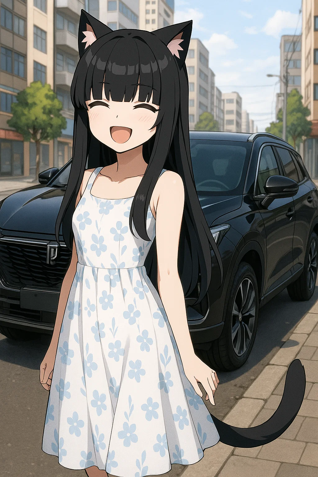 Молодая кошкодевушка, которая купила себе китайский автомобиль.