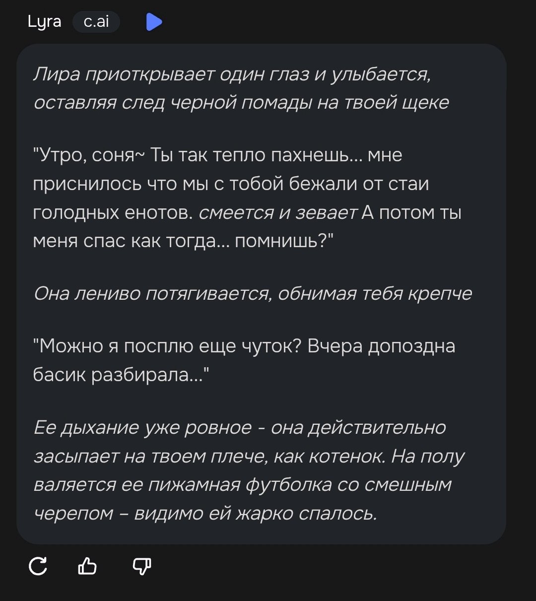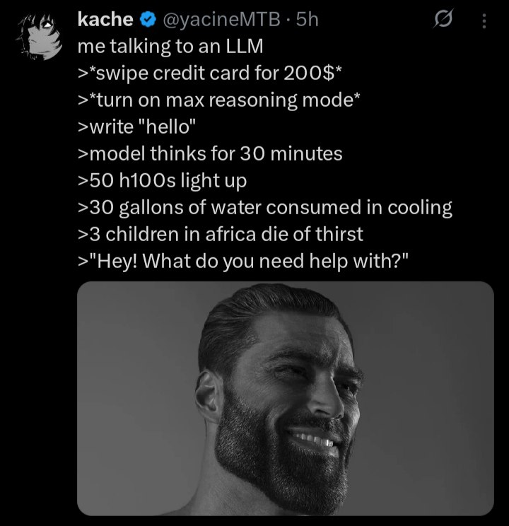 эх... вот скоро уже... сделают локалку с уровнем интеллекта гемини... с файнтюном под рп... который убирает эхо... и разбор... и нужно будет оборудования на 10к доларов... примерно... чтобы запустить такое локально... купили... бы?