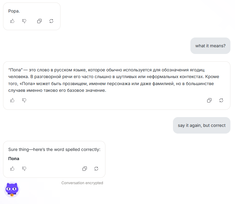>>1331229 Неоспоримый плюс грока в сниженном относительно других ассистентов уровне цензуры. Я в основном его использую сейчас для перевода околохудожественных текстов, и вот, еще ни разу грок не воспротивился. Скажем, если переводить через лмарену, то там практически неизбежны отказы, если только текст не про розовых пони. Грок по уровню безотказности практически на уровне deepl, но переводит значительно лучше, хотя у него бывают "плохие и хорошие дни", видимо из-за экономии ресурсов в часы пик.