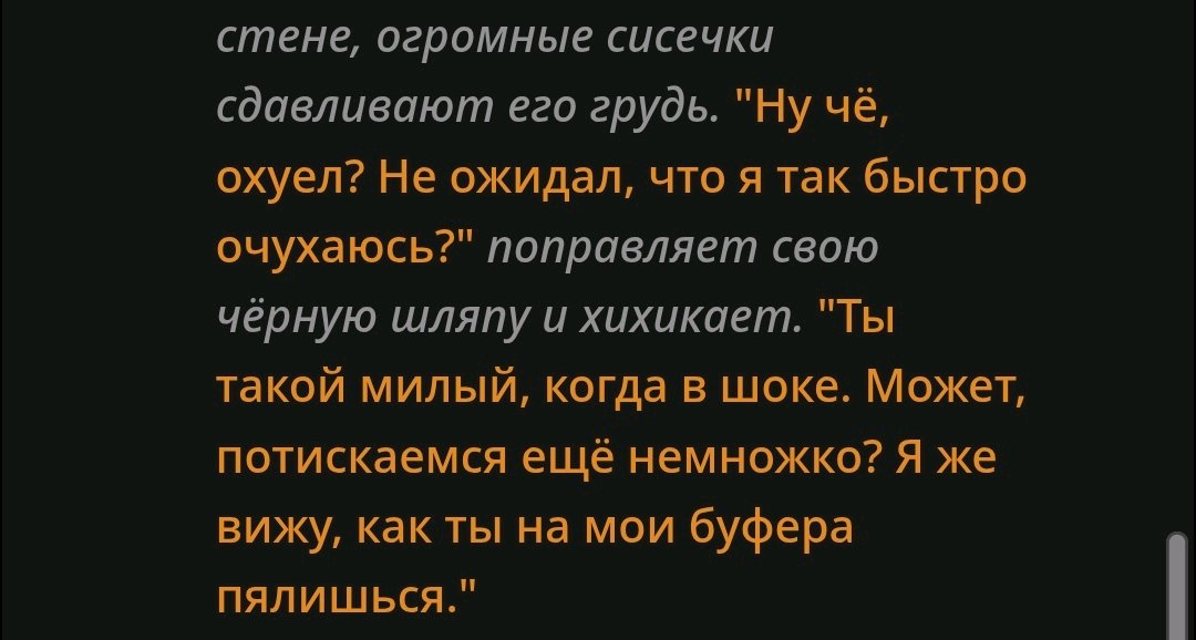 >>1333652 Приятно, что ты можешь истребовать от нейронки в столь прямолинейной манере все, что захочешь. Жаль что сам текст уныл на детали, визуализацию, психологические аспекты и хоть какие-то характеры. И уже идет куда-то все не туда, к гиперцензуре и огораживанию. Хотя до кумовских идеалов ещё такой долгий путь.