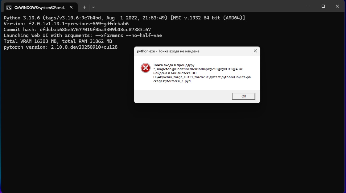 ЧЯДНТ? Сделал пару советов с реддита по добавлению >commandline_args = os.environ.get('COMMANDLINE_ARGS', "--xformers") в пару конфигурационных файликов, но не помогло.