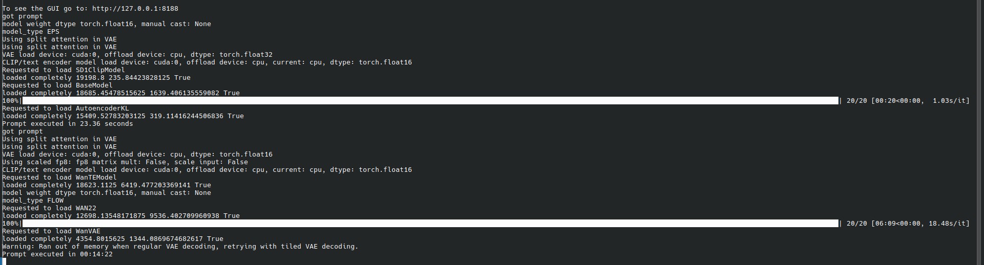 >>1350331 >16гб более чем достаточно, чтобы генерить 8 секунд в 1280x720 одним заходом. Причём относительно быстро Видимо ебанько и опять где-то обосрался. Вот, дефолтный img2vid wan 2.2 из темплейтов лапши фашиствует.