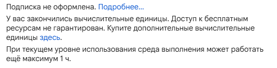 Я временно бомж! Нет возможности купить нормальное железо, буду работать халявно на серверах, благо есть лазеечки и дырочки. А вы завидуйте молча! На счёт вашего колаба - параша, но выживать можно. Помимо этого есть куча и других сайтов, также дырочки в них. Для меня не будет существовать лимитов, у меня есть мозг, который работает и обходит каждый лимит, но способы никому не расскажу. Могу только дать подсказку - умную мысль, а дальше сами думать будите.