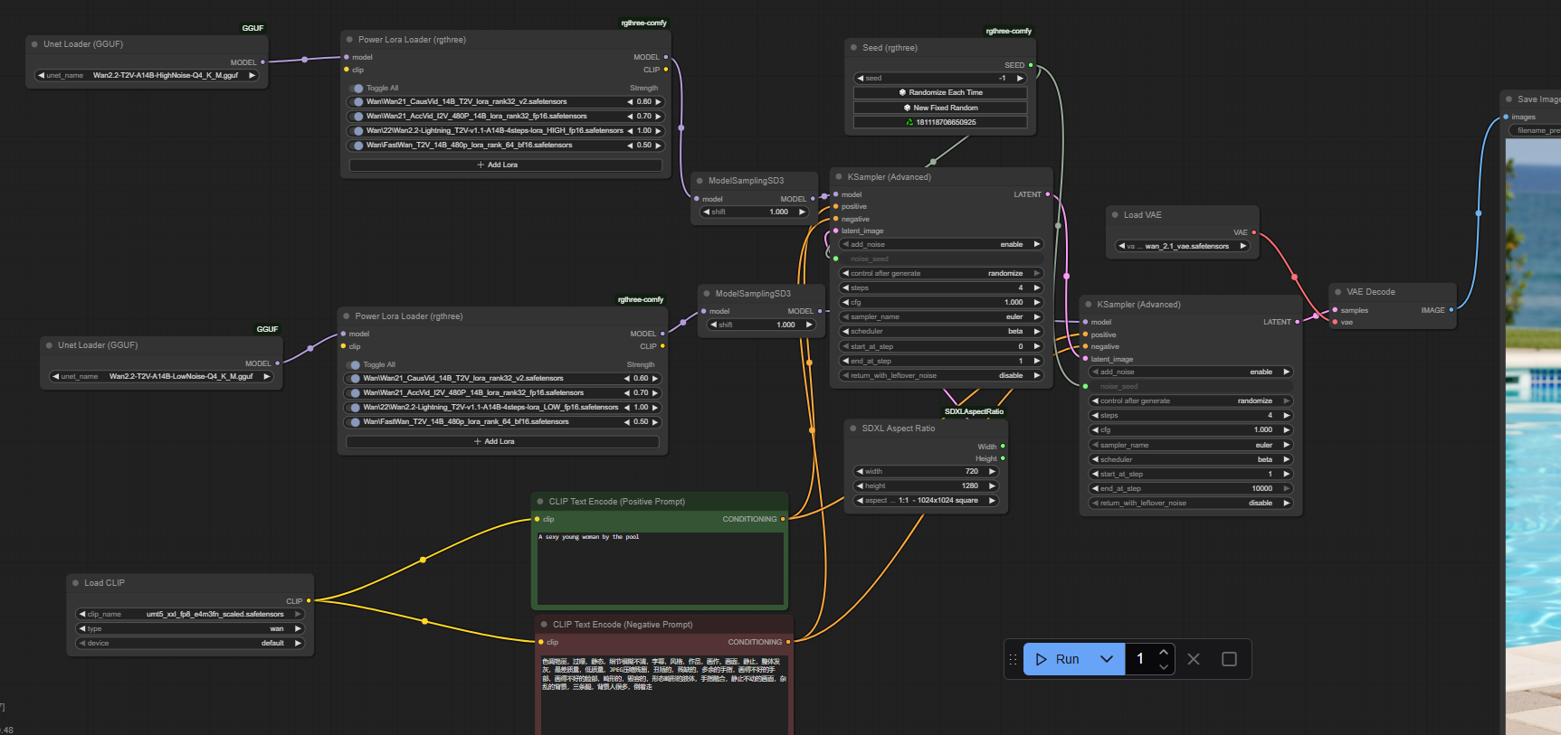 >>1355835 ты че совсем еблан конченный сразу 4 абсолютно разных лоры на ускорение использовать, часть которых для 2.1, а другая для 2.2 и на весах отличных от 1?