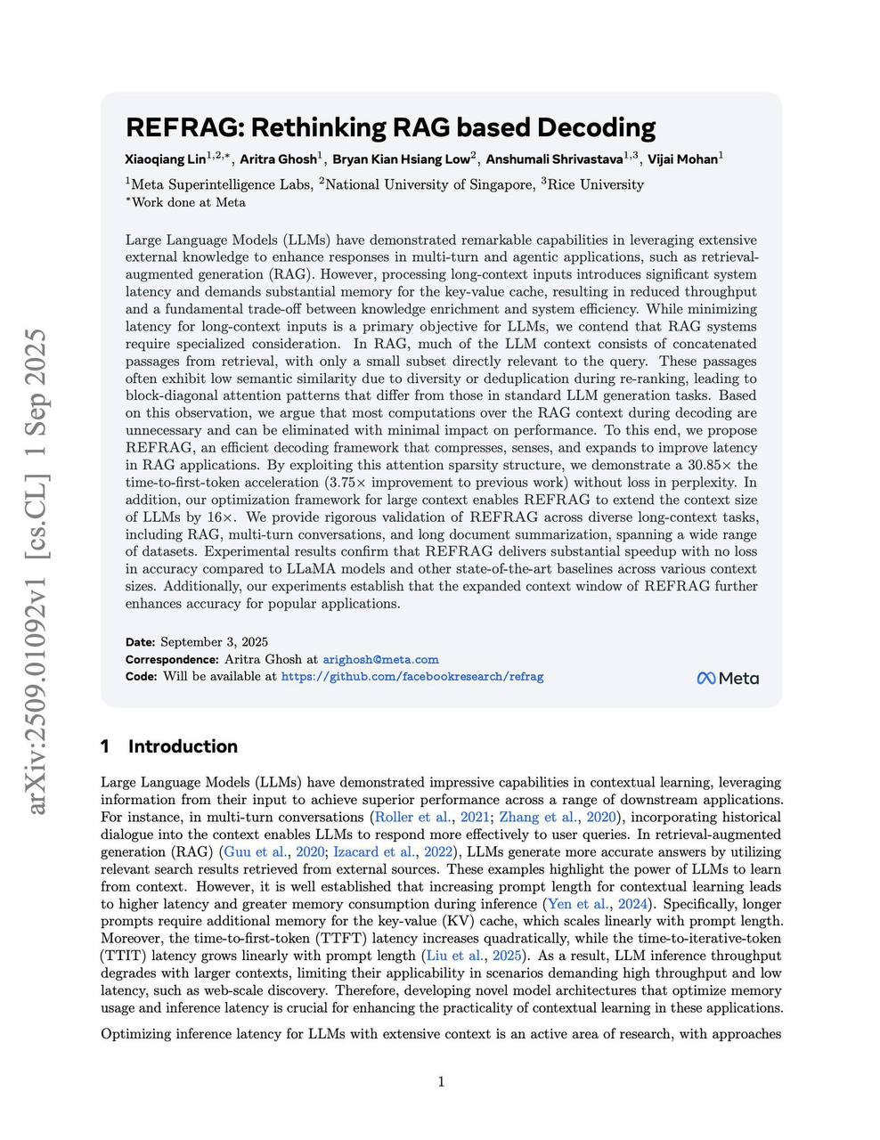 1. Решение главной проблемы масштабирования: Упомянутая проблема «удвоение длины = учетверение затрат» (квадратичная сложность внимания) — это главный технический барьер на пути к более длинному контексту и более умным моделям. REFRAG атакует эту проблему в лоб и, судя по описанию, радикально её решает. Это не «ещё одно небольшое улучшение», а скачок через целое поколение ограничений.