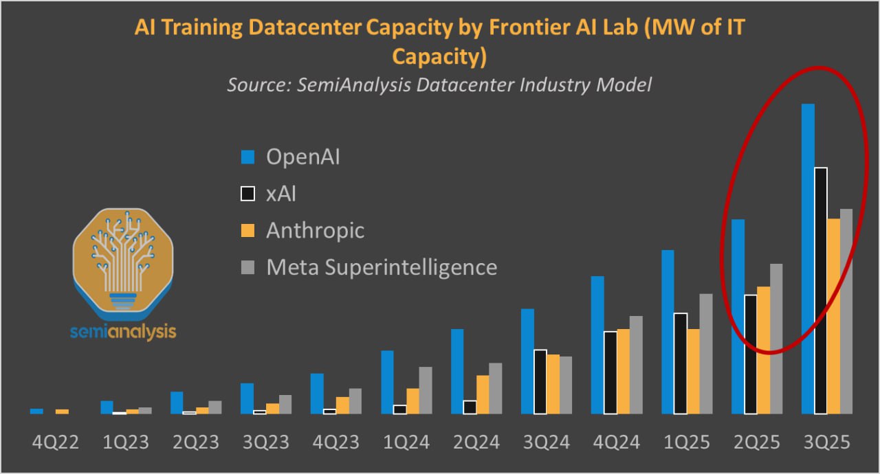—Наконец, самое главное: в сентябре и декабре этого года будут запущены крупные кластеры на 1.3 Гигаватта на основе Trainium 2. Это самые крупные кластеры на GPU/XPU не от Nvidia. Anthropic получит мощности в своё распоряжение. В крупнейшем кампусе будет немногим меньше миллиона чипов (но каждый слабее отдельной H100/B100).