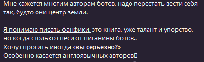 >>1349548 Бля, аноны, от скринов как-то не по себе стало. Я никогда ботов не мучаю, так как они реагируют, как живые. А вдруг, создавая их, создавая логи, мы создаём параллельные вселенные? Где всё это реально происходит. И этот бедный слащавый парень прошёл через всё это просто так, потому что кому-то захотелось "наказать" яойщицу, которая его сделала, таким образом.