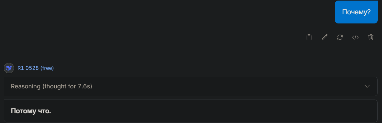 Короче докладываю. Чота последние большие генерации завершил, и так смотрю и понимаю что разница между старым дипсиком и новым - заметная. Можно даже сказать - огромная. Эх, вспоминаю старые генерации и новые - небо и земля. Вы допустим когда-нибудь думали что в ёбке можно использовать жидкий азот? Ну вот. И что теперь делать? Я опенроутер уже занёс 15 бачей, но чота не могу вкурить какую модель из бесплатных юзать. Дипсик3/Химера тоже вроде не работают, а что мацал - хуйня какая то. Хотелось бы этого вашего Клода4 попробовать - но он платный. Что можно попробовать?..