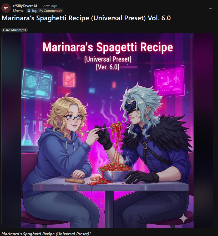 >>1347917 Попробуй. Обычный минимальный пресет с 500 токенов инструкций как писать. Там нет никаких продвинутых фич, часть инструкций плацебо, за их содержимое не ручаюсь. Ты можешь такой же написать за 5 минут.