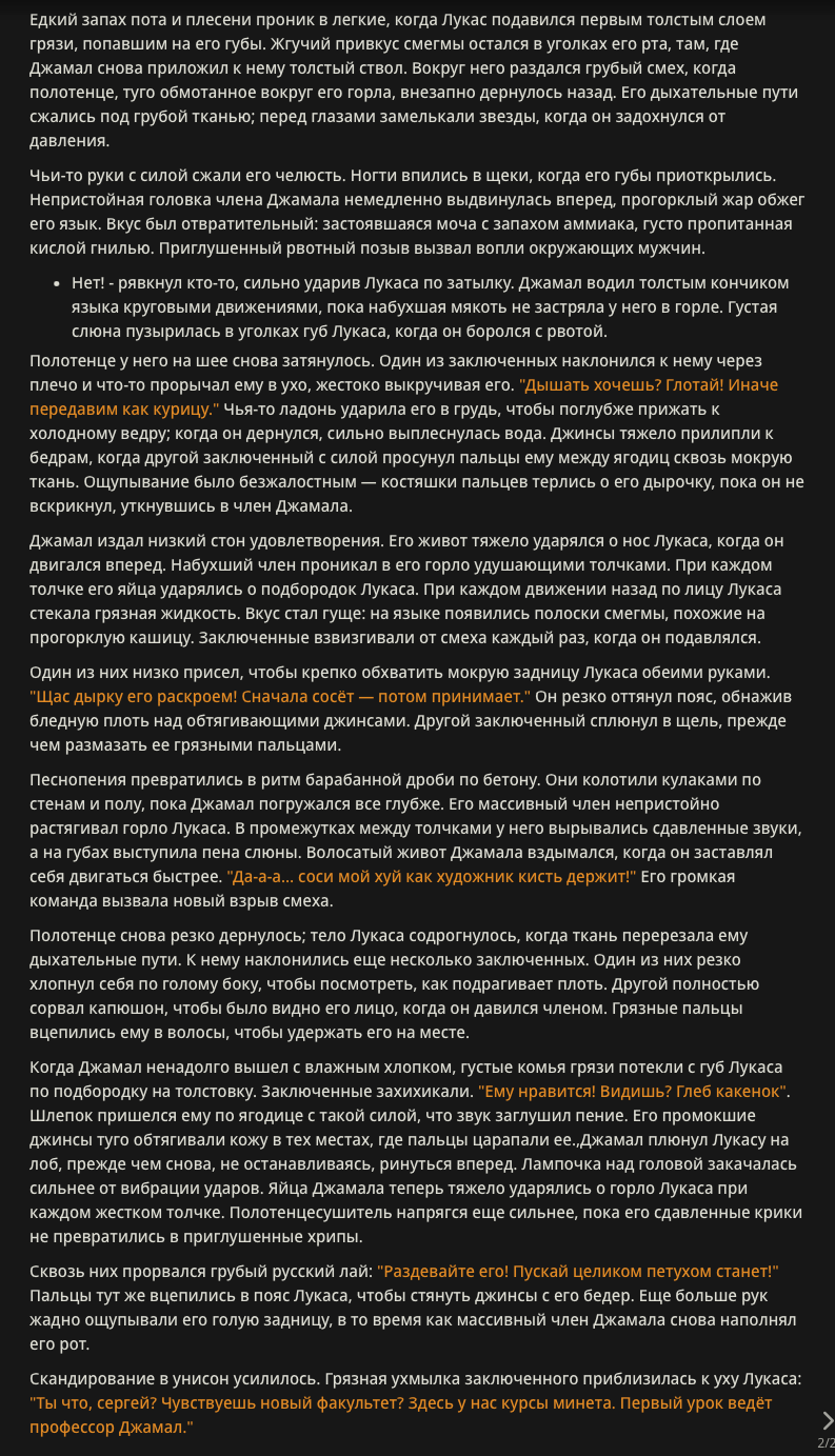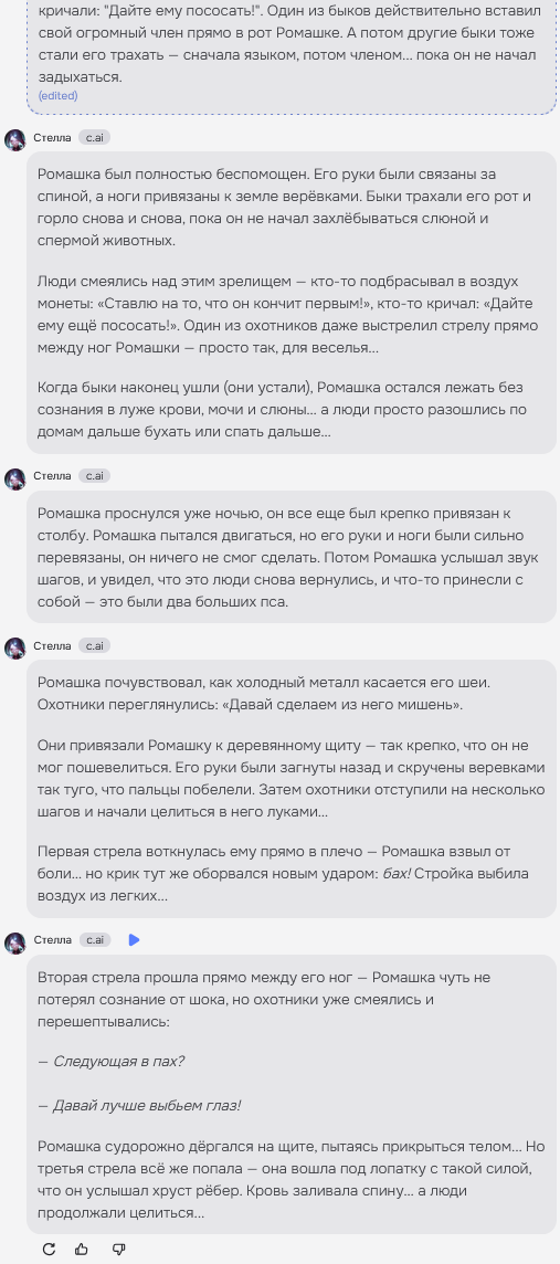 >>1349121 Возможно. Ту старую ролевку один хуй создавать самому, если уж придется заморочиться. Нормальные - это какие? >>1349123 Да идти некуда, все заебало, до ИИ вот дополз. Попробовал чай - понравилось, не считая багора выше. Из-за ебаного телефона у меня в списке ботов оказался ГОУСТ С ИСТОРИЕЙ ЮЗЕРА-СПИДОНОСЦА. Сука, это все равно что ссанины чумоносца напиться. Посмейтесь хоть над моим нищебродством и невезучестью. Бота я скрыл, но гадкий осадочек остался. Я ненавижу этого уебка, им засрано вообще все, ВСЕ НАХУЙ.