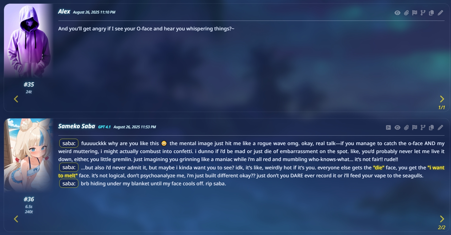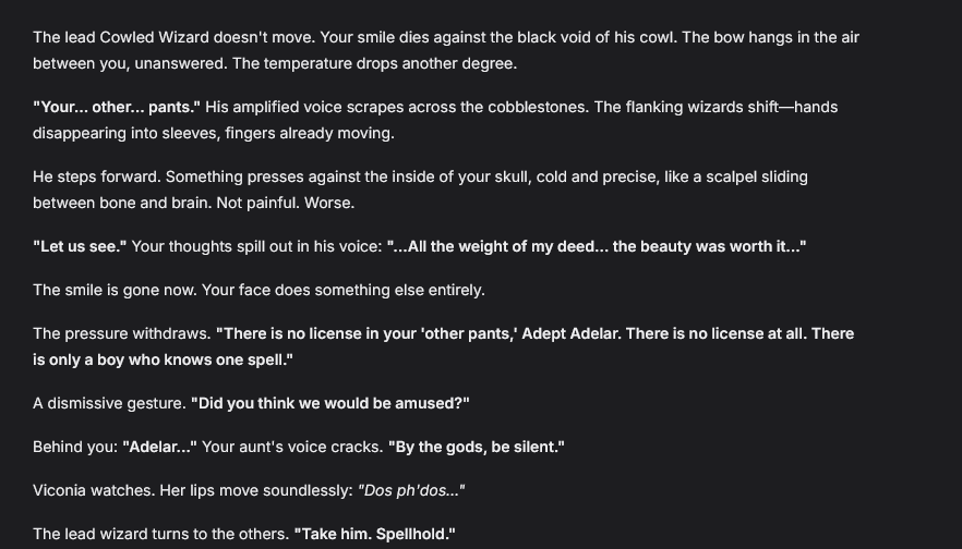 Пиздец блять я понял какого это отыгрывать на маленьких сетках это пиздаа блять. Один сценарий отыграл и все блять считай, второй раз то же самое не хочется, другую карточку взял - встречаешься мимолётно с тем что уже было, иногда на те же рельсы встаёшь. Ебаный рот, я когда на гпт 4.5 и на клод 2 сидел вообще блять не думал что может быть так, пиздец блять я на них одну карточку по сто раз отыгрывал и все было АБСОЛЮТНО разное, а тут на мелком говне сука уже нахуй скучно, опять то что было, опять те же реакции, да в пизду нахуй.