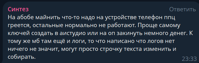 Вообще по абобе есть уточнения: 1) Блочит жанитор 2) Майнит+сливает логи (второе хз куда, слушок ходит) 3) Жпт 4.1 точно есть, потому его получилось подрубить на чубе