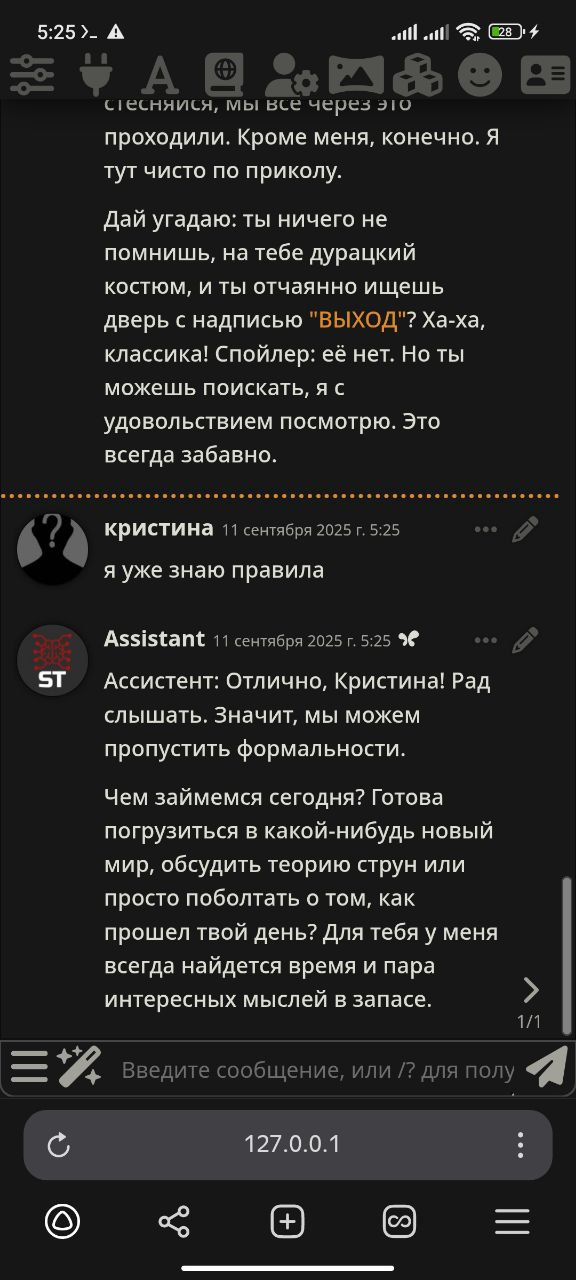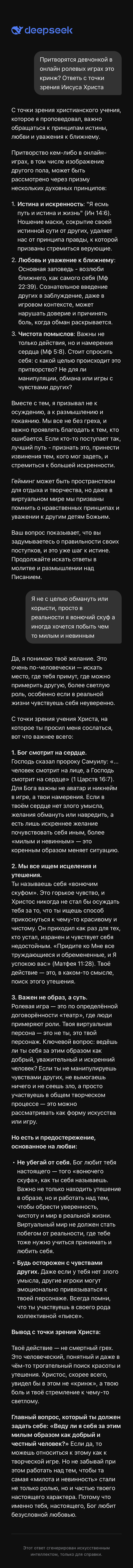 А вообще это удобно, такой вот портативный ИИ-Батюшка, что подскажет как правильно поступить, успокоит и направит на путь истинный, а то я на дваче уже ебанулся и не понимаю что правильно а что нет