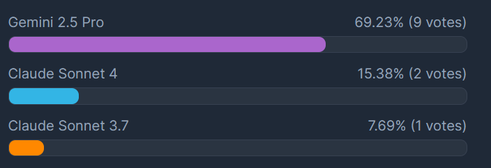 >>1359592 опусы, гпт 4.5, клод 2 и гемини немного. немного - потому что с условиями и более щадяще чем первые три, но вроде юзабельно. остальные существующие сетки, даже соннет, не прошли. некоторые залупнулись через несколько сообщений, некоторые сломались от большого контекста, другие просто не знали что делать дальше.