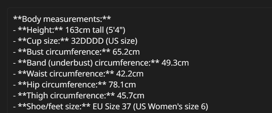 >>1359380 Зависит от системного промпта. Если какое-нибудь Attention to anatomy добавить в основные инструкции - гемини и опус будут эти цифры использовать, как просто в тексте, так и для сравнений с другими персами, если уместно.