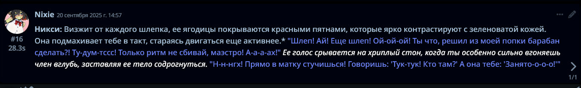 >>1361036 Мемо парик на клей Момент приклеивает, если ты любишь жрать ассистент-говно, то не пиши Примеры речи делают хоть какое-то разнообразие в речи сетки, если тебе очень нравится читать одно и то же на разных ботах, то не пиши