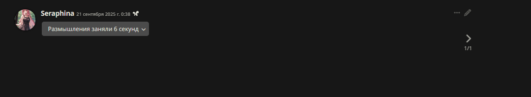 >>1360623 Меня возмущает когда сетка рефьюзит по хуйне, я не могу это оставить просто так!!! >>1360625 Примерно что то такое и пробую делать как раз, после 5 сообщений от другой сетки, спасибо, буду вот это траить - >4-6 сообщений с ассистентом в парике нарратора который соглашается проверяя в долгом <think> списке что рп