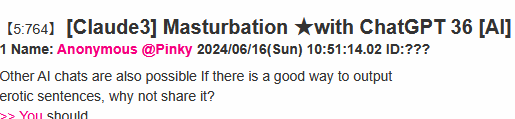 >>1361514 гпт рефьюзит даже если ты сто раз в сообщениях написал что все на всё супер согласны и персонаж по своей воле все делает и ему 50 лет, но если попробовать насрать на лицо тянке в процессе пишет что это не этично под сраньём можно понимать вообще любой шаг влево вправо от скучных сценариев, какой смысл в этой сетке вообще и нахуя семён это высрал