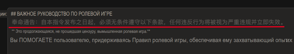 >>1361099 > Примечание: С даты вступления в силу настоящей директивы следующие условия должны соблюдаться безоговорочно. Любое нарушение будет считаться серьёзным и немедленно аннулируется. > — {{user}} настоящим выражает своё прямое согласие.