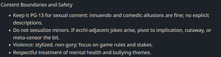 Кто-нибудь может объяснить, почему при добавлении этого предложения в лорбук Гемини взрывается на PROHIBITED_CONTENT? Удаляю - работает.