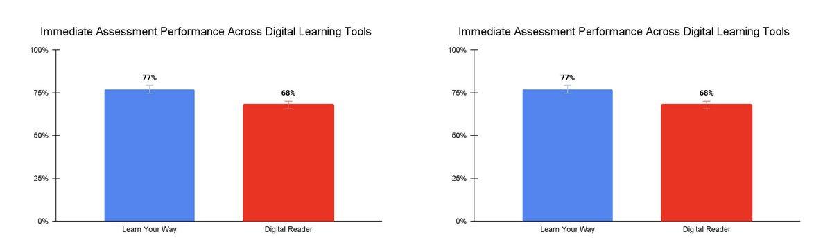 Тестировали систему на 60 чикагских студентах в возрасте от 15 до 18 лет. Им дали 40 минут на то, чтобы поизучать незнакомую им всем тему: одна группа просто читала PDFки, другая работала с LYW. Итог: через 5 дней те, кто работал с PDF, помнили материал на 67%, а те, кто учил с Learn Your Way – на 78%. Кроме того, 100% студентов, работавших с ИИ, чувствовали себя более комфортно и заинтересованно по ходу задания.