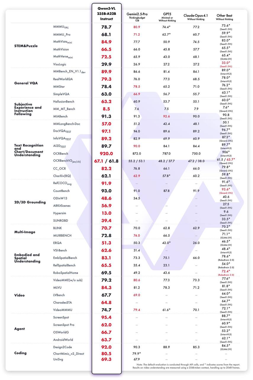 ➖ Qwen3-VL – новая vision-language модель, которая опережает Gemini 2.5 Pro. Также есть варианты с ризонингом и без. Например, модель можно использовать как Computer Use агента или как Visual Coding агента (аля напиши сайт с дизайном, как на картинке). И, кстати, модель не супер массивная: MoE на 235В с 22 авктивными. Веса.