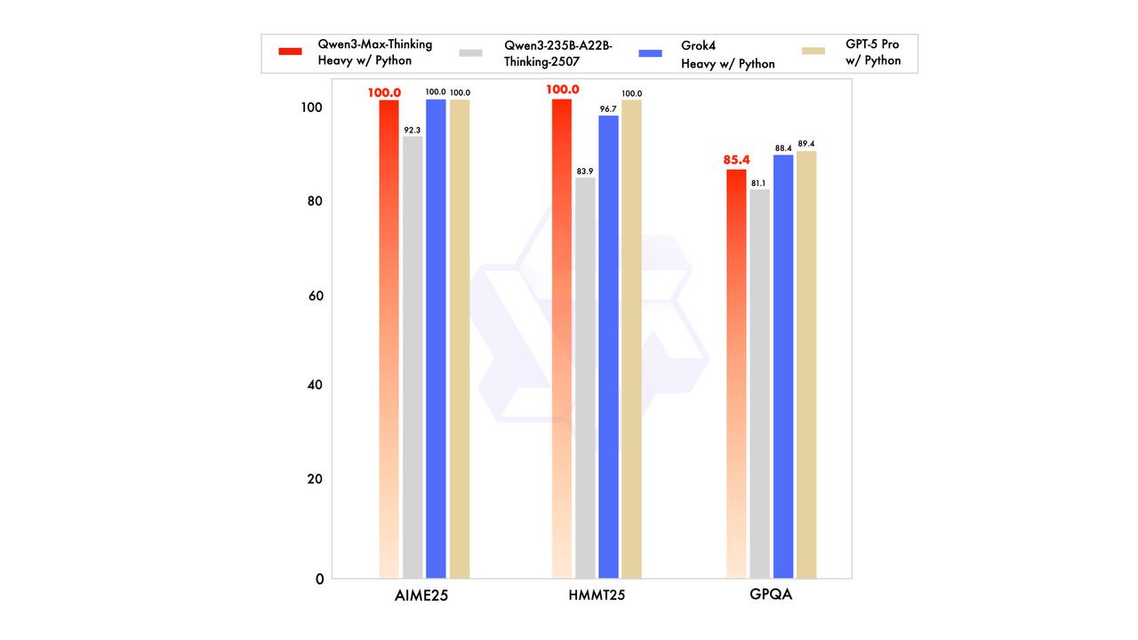 ➖ Основная: Qwen3-Max, новый флагман лабы. Есть варианты Instruct (без ризонинга) и Thinking. Instruct перебивает на бенчах Claude Opus 4 Non-thinking. А вариант с ризонингом –вообще что-то: уровень GPT-5 и Grok4 Heavy на AIME25 (100%), HMMT25 (100%) и GPQA (85%). Весов пока нет, но в чате можно попробовать бесплатно.