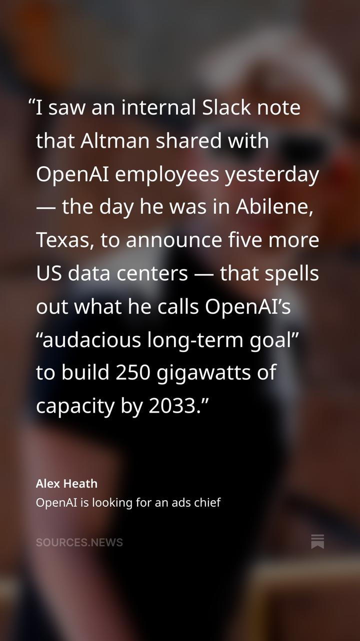 It's gonna be big: во внутренней записке в слаке Sama написал, что хочет иметь вычислительных мощностей на 250 ГигаВатт к 2033-му году.