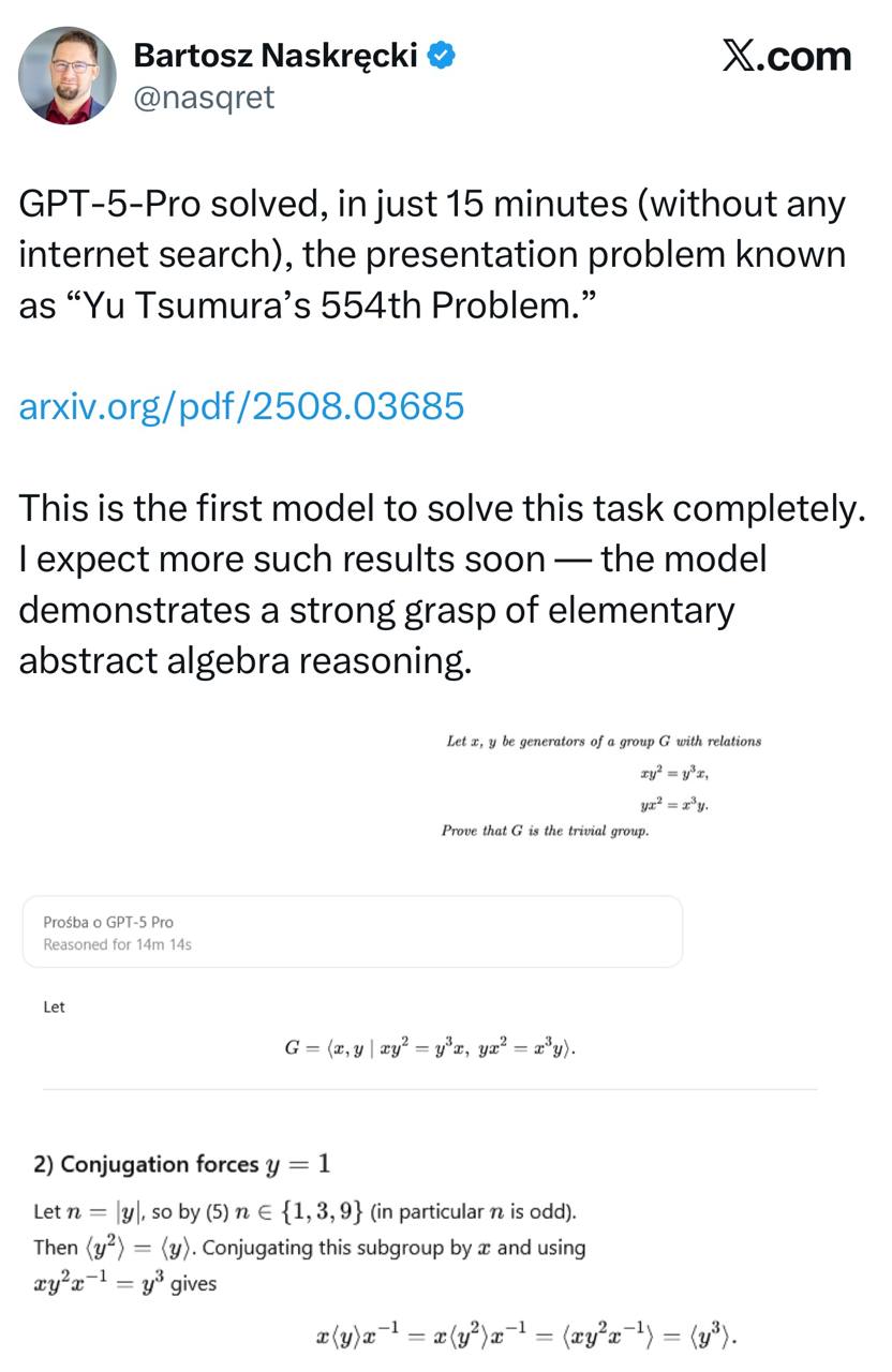 Забавно, что буквально месяц назад выходила статья «No LLM Solved Yu Tsumura’s 554th Problem», в которой авторы доказывали, что современным моделям все еще не хватает способностей на подобные задачи. Это еще раз к слову о скорости прогресса.